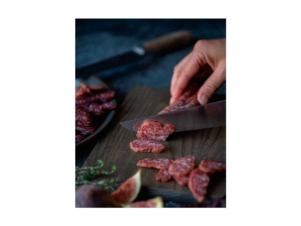 Složení výrobku: Vepřové maso; dusitanová solící směs (jedlá sůl, konzervant: dusitan sodný); koření; aroma; dextróza; antioxidant: E316; startovací kultura; vepřové střívko. Na 100 g hotového výrobku bylo použito 194 g vepřového masa.
